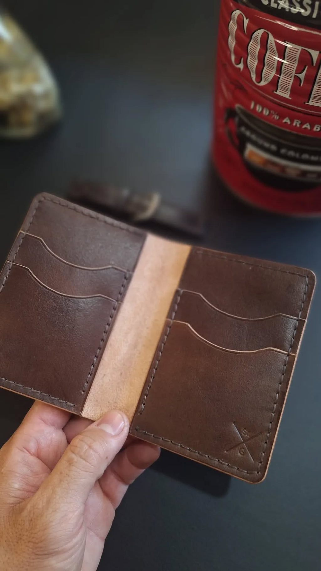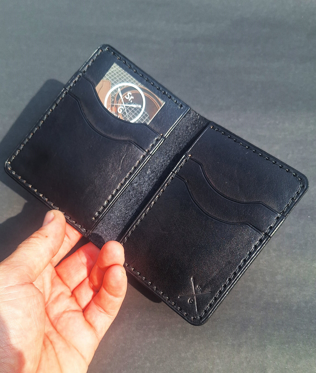 Carteira Vertical, feita inteiramente à mão. Esse modelo de carteira cabe facilmente ate 10 cartões, CNH, RG e dinheiro dobrado. Ideal para quem quer espaço.